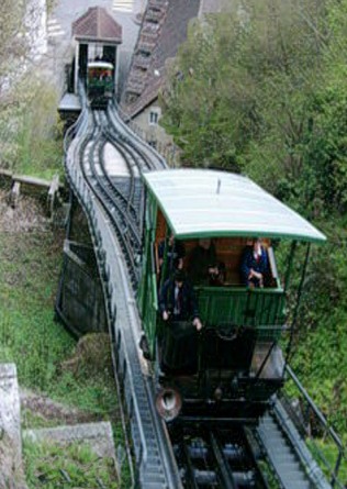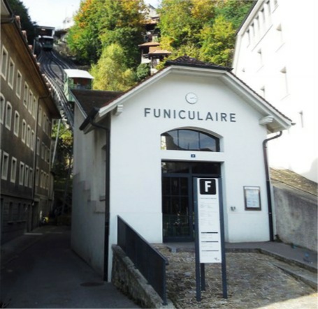 Le funiculaire, mis en service en 1899 par la brasserie Cardinal (1788) installée dans le haut de la ville, facilitait l’accès au lieu de travail du personnel de Paul Blancpain, alors dirigeant de la brasserie depuis 1877.