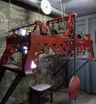 L’heure et les mouvements des Jacquemard étaient actionnés par une horloge identique à celle présentée en rouge sur la photo.