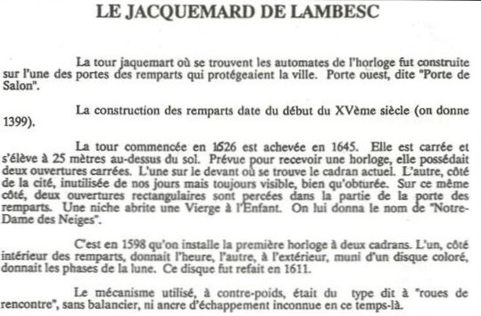 - «Le Jacquemard de Lambesc» par Monsieur Pierre Gazanhes