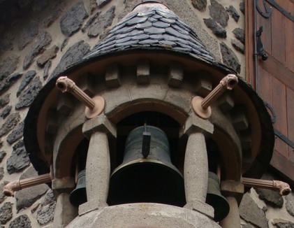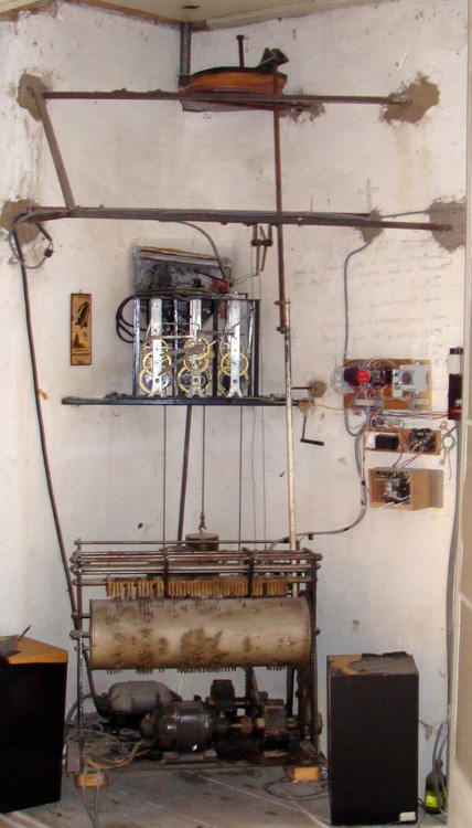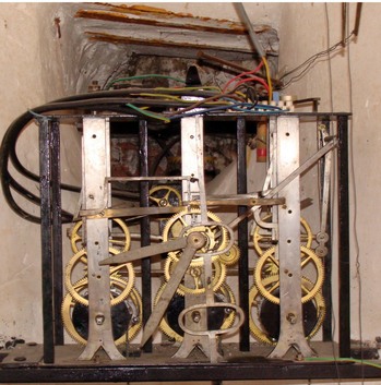 L’horloge est toujours en service et indique l’heure par l’intermédiaire de carillon à trois cloches, les douze coups de midi.