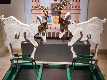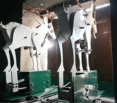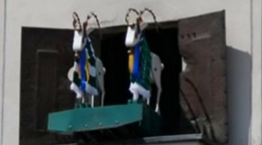 deux chèvres métalliques qui sortent chaque jour à midi et