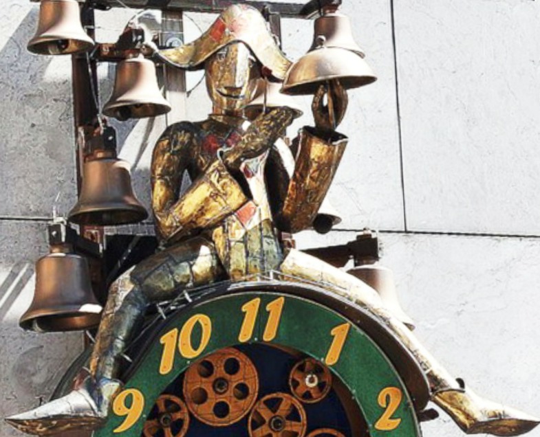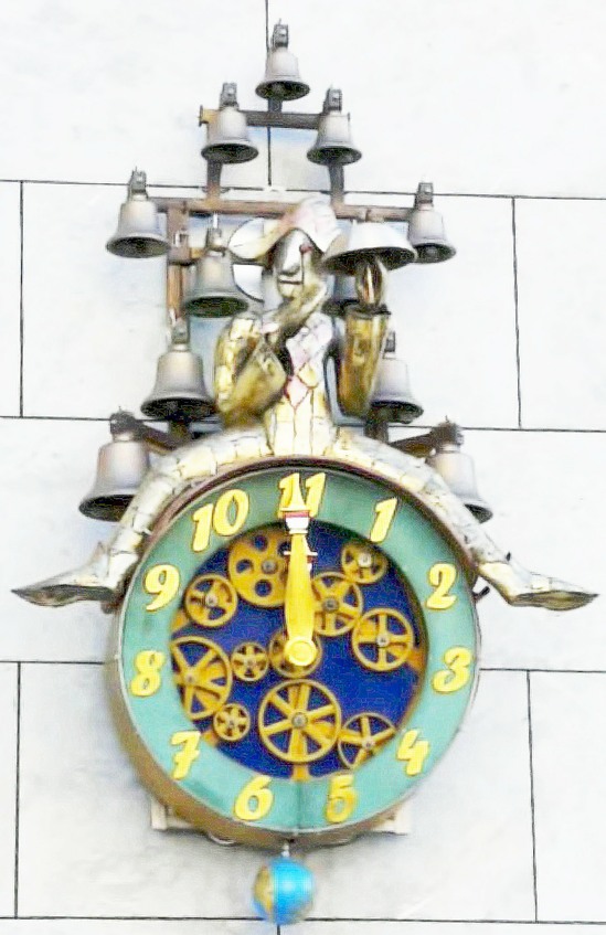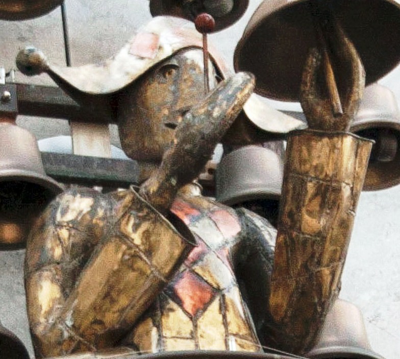 Le jacquemart frappe le timbre devant lui en tournant la tête de gauche à droite