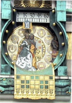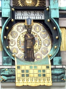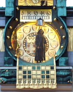 Les douze personnages en cuivre repoussé représentent les célèbres personnalités de l'histoire viennoise et défilent derrière le cadran de 4 mètres en lançant leurs ritournelles.
