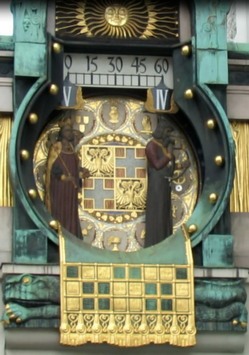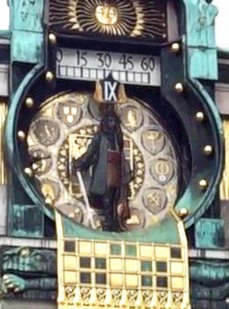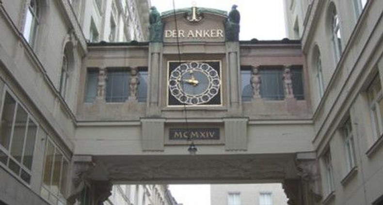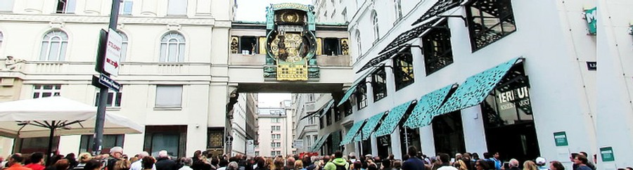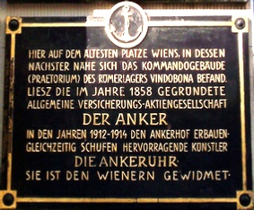 Sur une arche de 10 m reliant les deux immeubles de la compagnie d’assurance Anker, se trouve la splendide Ankerurh, une horloge réalisée par Franz von Matsch (1913/14).