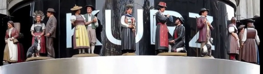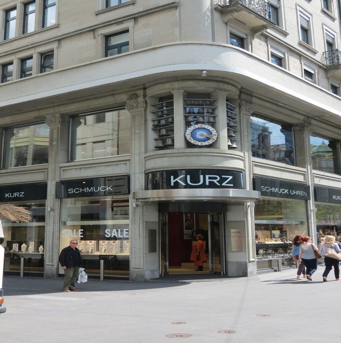 Chaque jour, à 11 heures et 16 heures, au Kurz und Uhren Schmuck dans la Bahnhofstrasse, la façade s’anime sur une des mélodies suisses bien connues.