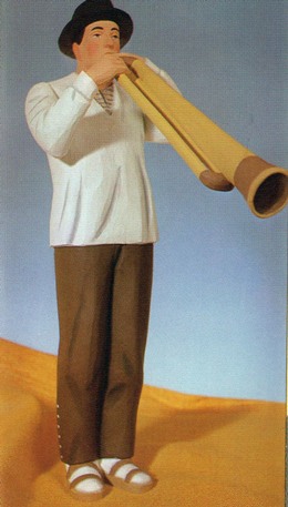 Berger du canton de Schwyz avec un Buchel (petit cor des Alpes).