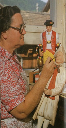 Les jacquemarts qui mettent en valeur les costumes de différentes régions Suisses, sont du sculpteur sur bois de Brienz, (CH) à 100 km de là.