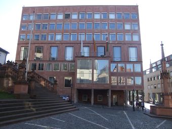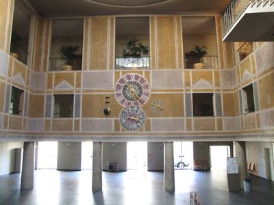 Construit en 1957 par la société Neher de Munich, l'hôtel de ville Aschaffenburg expose une horloge astronomique dans la salle d’attente.