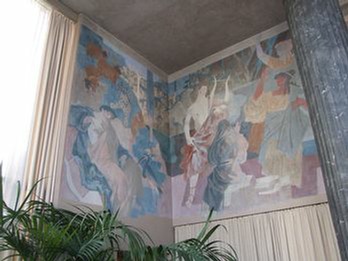 Le professeur Hermann Kaspar, de l'Académie des Beaux-Arts de Munich, a conçu ces grandes peintures ainsi que celles dans la grande salle de réunion.