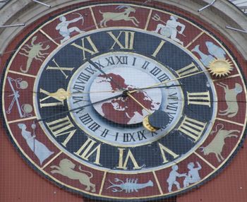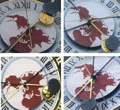Un petit cadran de deux fois 12 heures en chiffres romains permet de positionner l’emplacement de la lune par rapport au Pôle Nord sur la mappemonde, de nuit ou de jour.