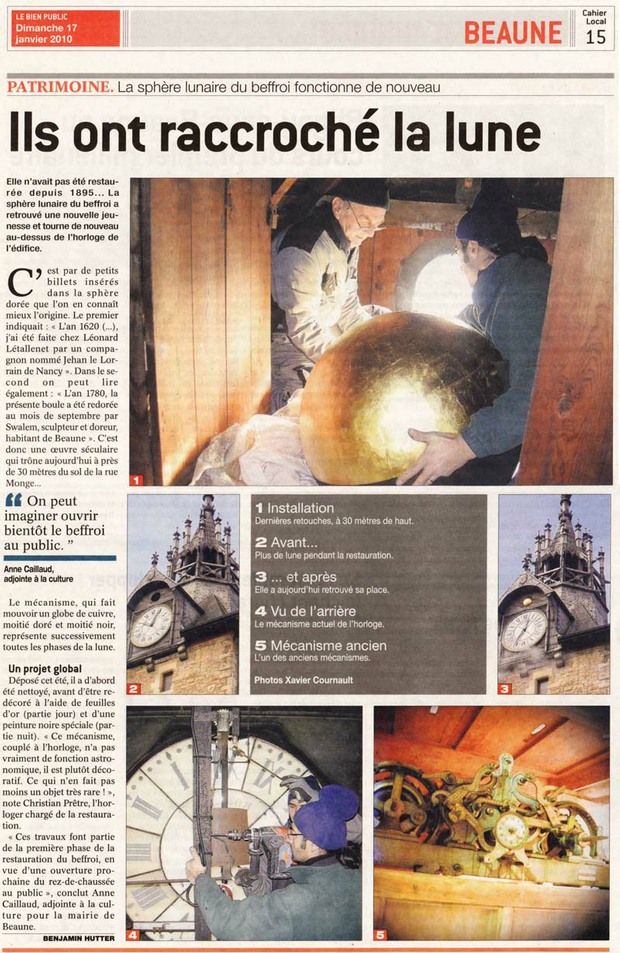 A la fin du XVIIIe siècle, Bredeault rapporte qu'un globe moitié noir, moitié doré marquait les phases de la lune.