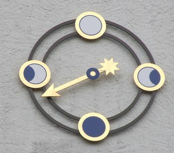 Celui de droite comporte les quatre phases de la lune, indiquées par une aiguille.