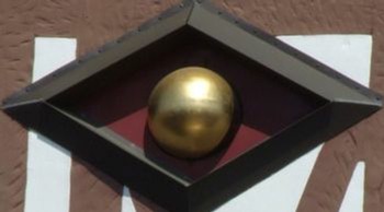 Une représentation du globe lunaire, noir et or, dans un losange, donne les phases de la lune, également du coté sud.