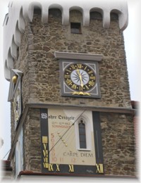il y a 2 cadrans solaires rénovés sur l'est et au sud.