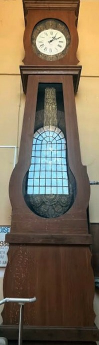 L'horloge comtoise de 6.75mètres à Morbier, installée en 1985, utilise un mécanisme à poids pour faire fonctionner les aiguilles et le carillon, tout en synchronisant plusieurs cadrans extérieurs.