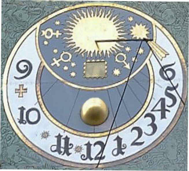 Le cadran solaire montre le ciel de nuit au-dessus de Munich avec 3 planètes.