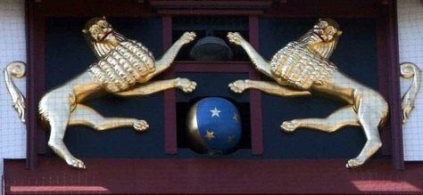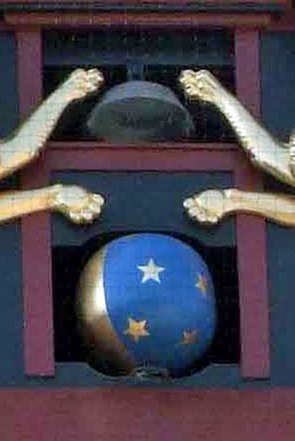 Entre les pattes des lions se trouve une sphère qui donne les phases de lune.