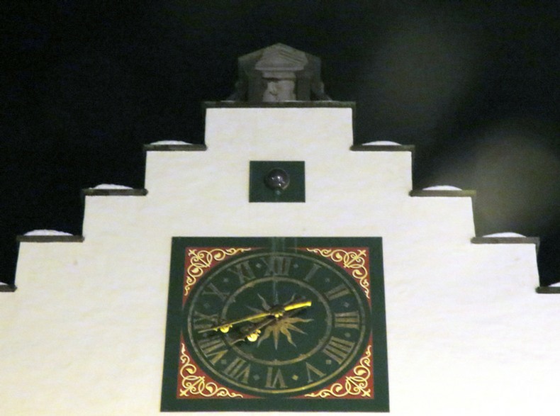 Le système de l'horloge dans le marché Waaghaus se compose du cadran et de ses aiguilles, heures minutes en chiffres romains.