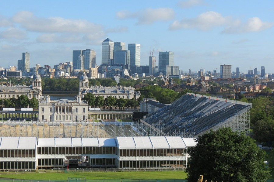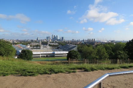 De la colline de Greenwich une vue splendide de la ville de Londres et des constructions olympiques