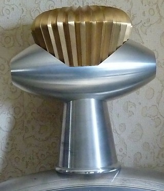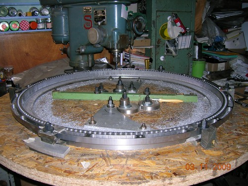 Les ébauches, en vertical et horizontal sur la fraiseuse: la plus grosses pièce à un diamètre de 1066 mm à l’état brut ; elle pesait 151 Kg et finie 33 Kg