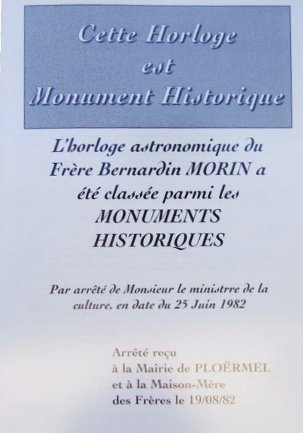 L’horloge a été construite par le Frère Bernardin qui n’était pas horloger, mais Professeur de mathématique et d’astronomie.