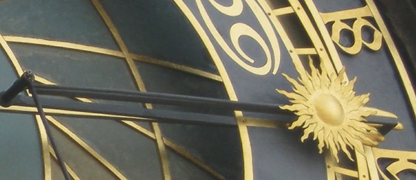La position du Soleil sur les lignes d'or courbes indique le temps en heures inégales.