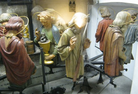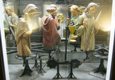 Dans les 2 ouvertures au dessus du cadran astronomique, le défilé des apôtres.