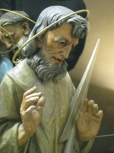 Au-dessus des apôtres, un coq, symbole de la vie.