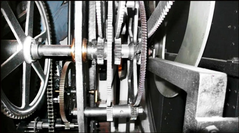Ce mécanisme, derrière l’astrolabe, est en fonction depuis l’an 1410 jusqu à nos jours.